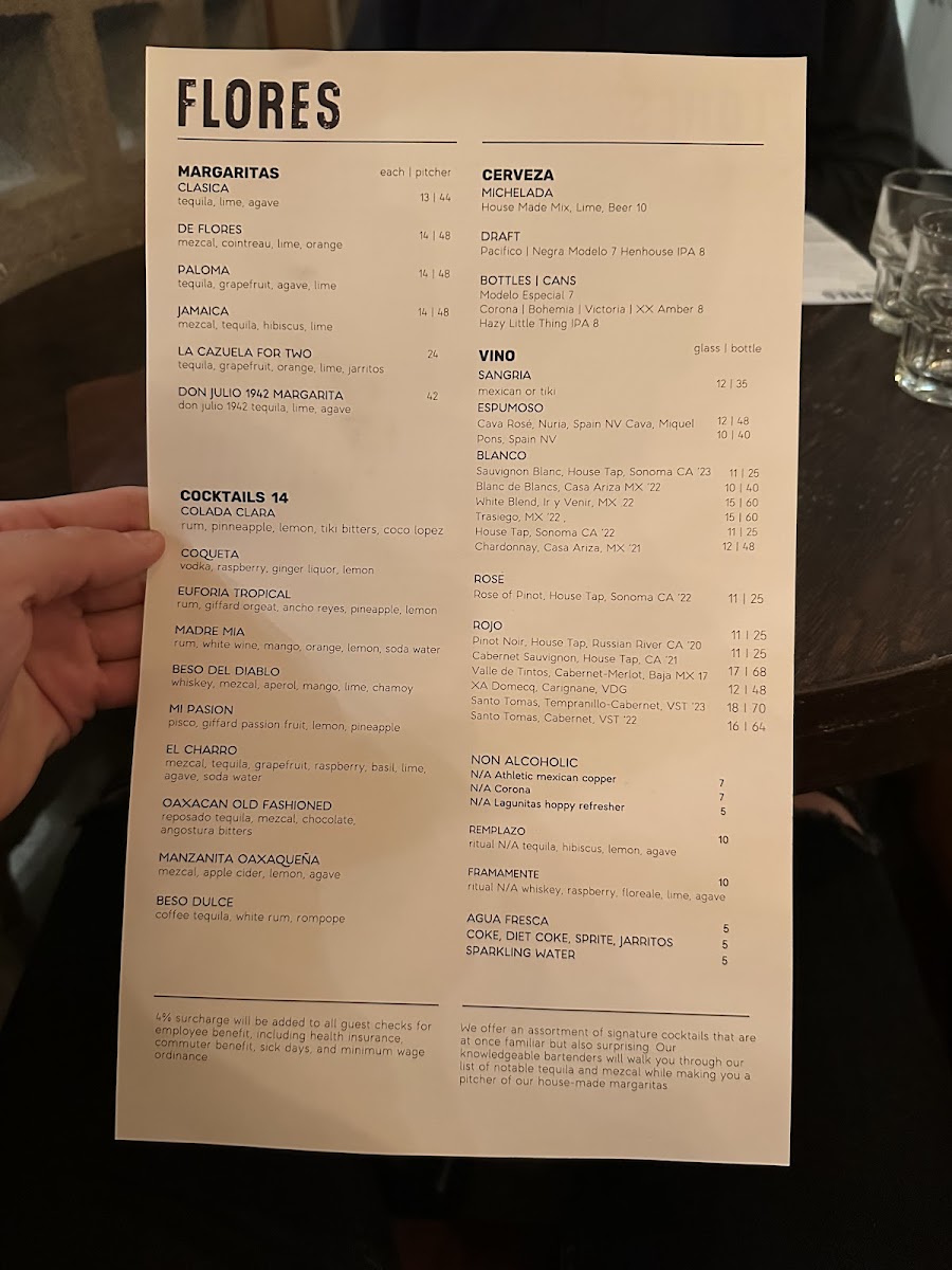 Flores Corte Madera specializes in authentic Mexican cuisine, showcasing a carefully curated menu that tantalizes the senses. Among the highlights, you'll find the rich and complex Mezcal: Rincón de Dios 100% Maguey Arroqueño, a true testament to the artistry of traditional Mexican distillation. Pair your mezcal with their renowned chicken pozole verde, a hearty dish that bursts with flavors, or indulge in the delightfully fresh guacamole and artisanal salsas that leave customers raving.